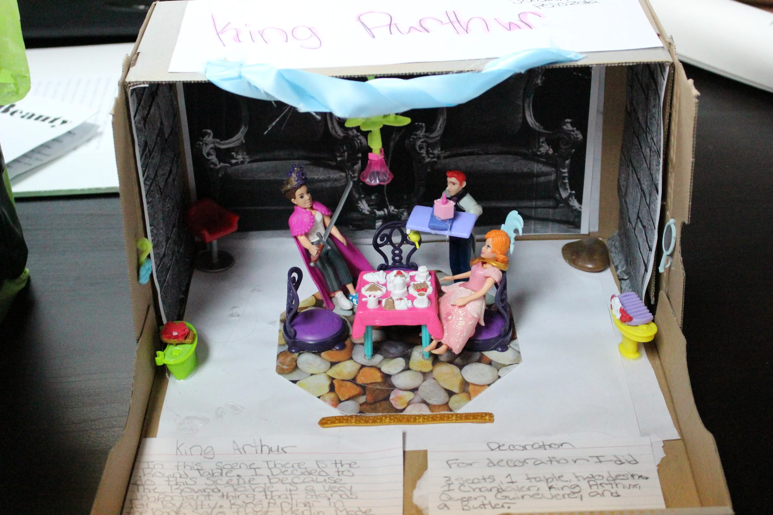 • Build a miniature stage setting of a scene in the book. Include a written explanation of the scene.